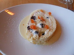 Only 1 choice for dessert as well--Mascarpone and Blueberry Roulade Cake with Lemon Anglaise. The cake was moist but the dessert was nowhere near as impressive as the dessert at Café Lucia the night before.